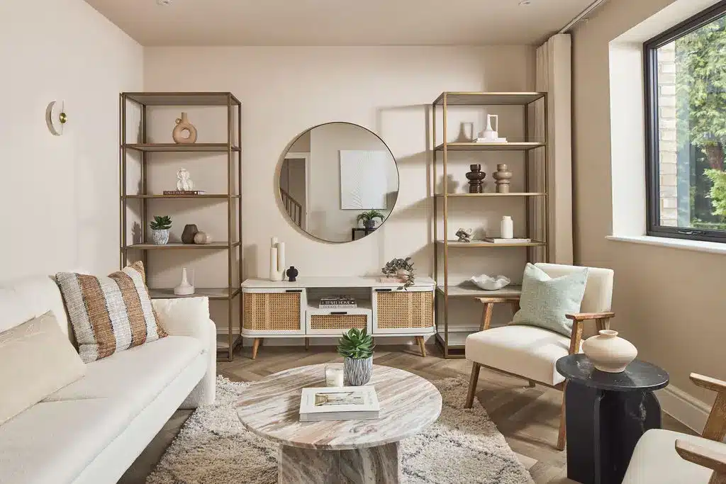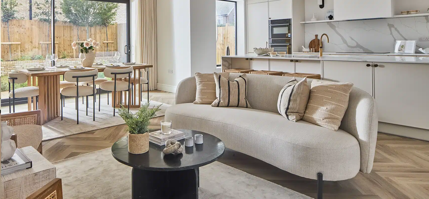 A neutral, sophisticated scheme full of statement furniture pieces, exquisite textures and luxurious fabrics achieve an elegant yet homely feel. A curated selection of artwork, home decor and lighting complement the interiors and complete the scheme.